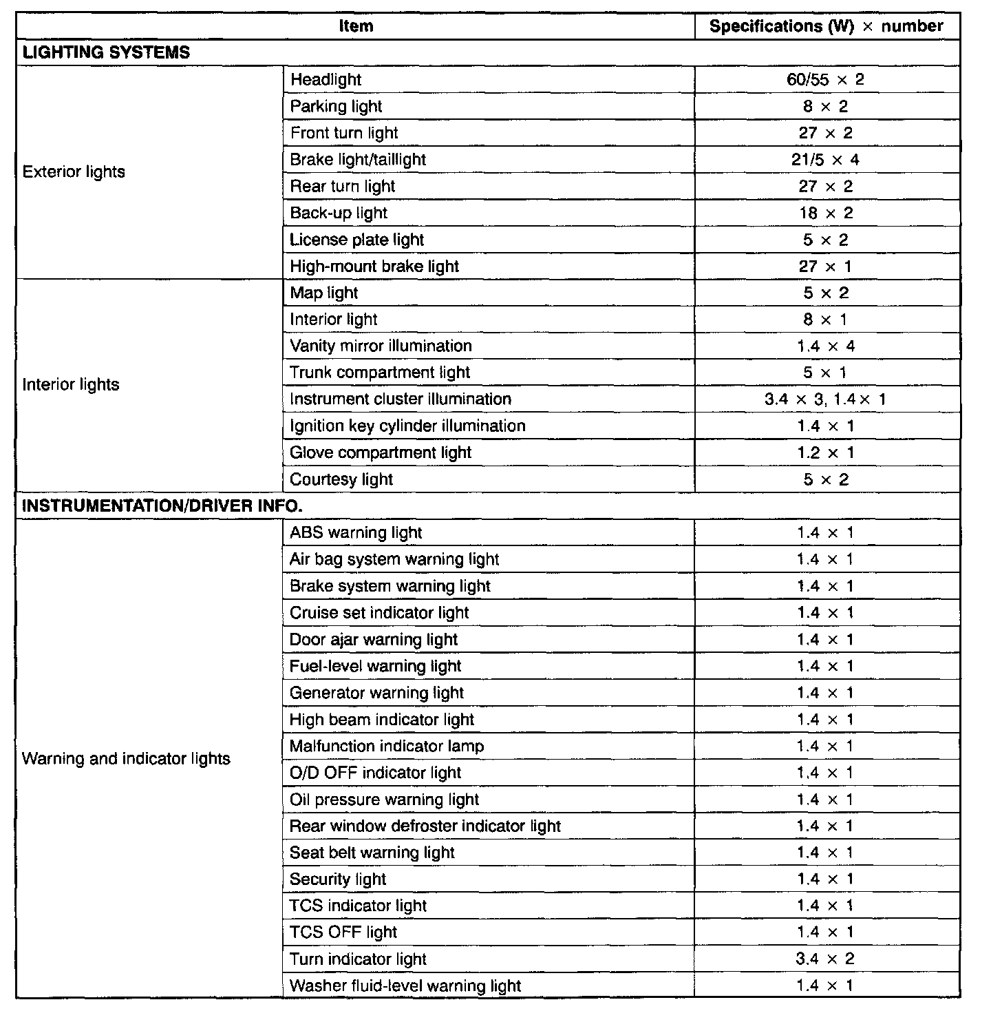 Bulb Specifications: