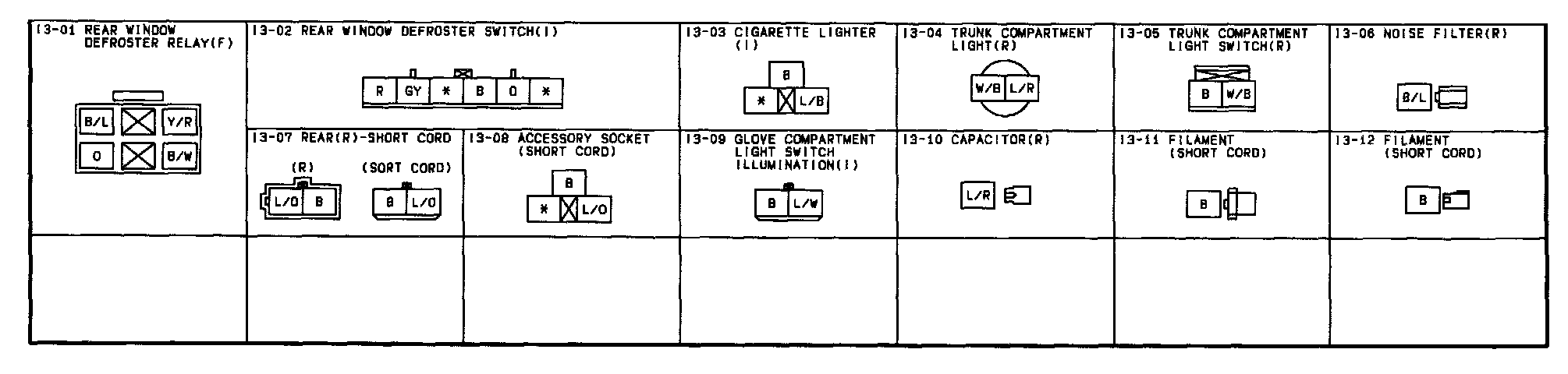 I-3 - Accessory Socket / Cigarette Lighter / Glove Compartment Light / Rear Window Defroster / Trunk Compartment Light Connectors: