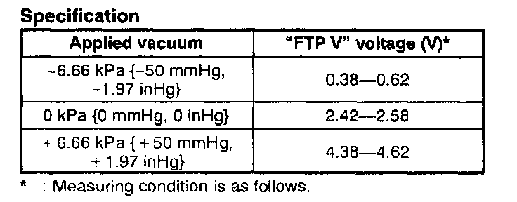 - Fuel tank pressure sensor terminal A voltage: Ground (below 1.0 V)