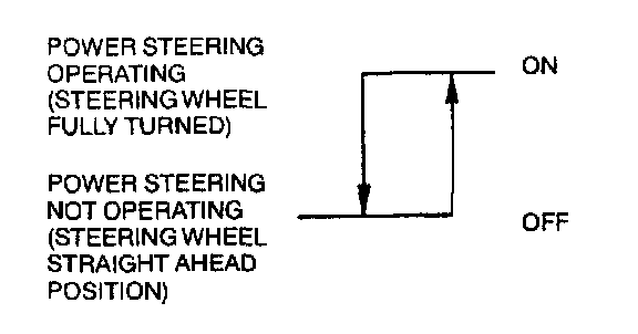 The power steering switch detects the power steering operating condition by the variation of the oil pressure in the power steering oil pump.