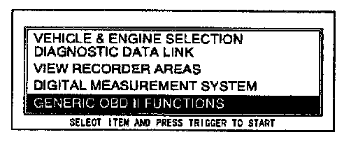 1. Perform the NGS tester hook-up procedure.2. Move the cursor to GENERIC OBD II FUNCTIONS.