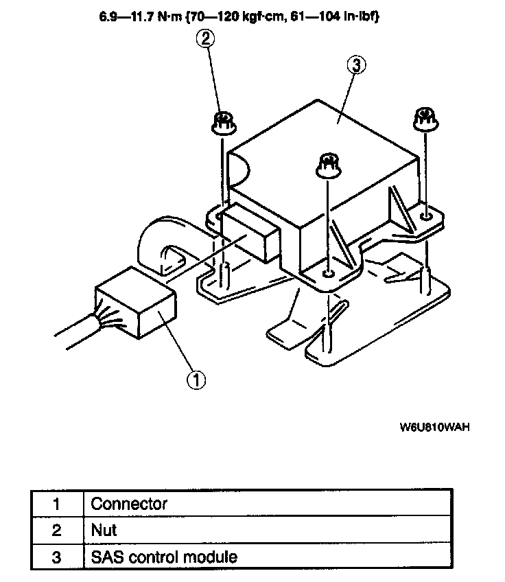 SAS CONTROL MODULEWARNING: Handling the SAS control module improperly can accidentally deploy the air bag modules which may cause serious injury. Read AIR BAG SYSTEM SERVICE WARNINGS before handling the SAS control module.