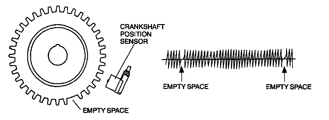 - The crankshaft pulley has a total of 35 teeth spaced 10 degrees apart with one empty space for a missing tooth.