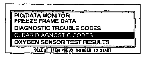 5. Move the cursor to CLEAR DIAGNOSTIC CODES.