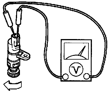 2. Measure the voltage between terminals of the vehicle speedometer sensor while rotating the driven gear.