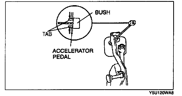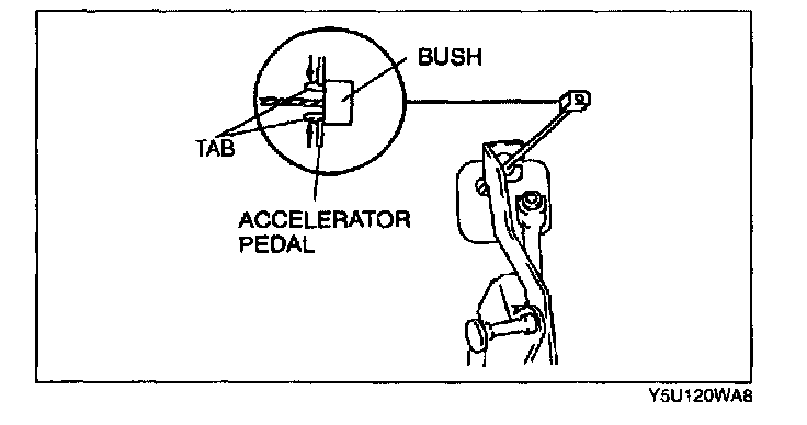 2. Press the tabs of the bush, and remove it from the accelerator pedal.