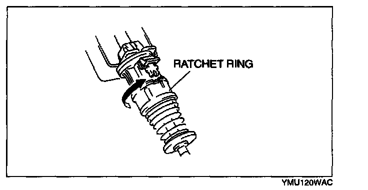 7. Turn the ratchet ring in the direction shown by the arrow to lock it.