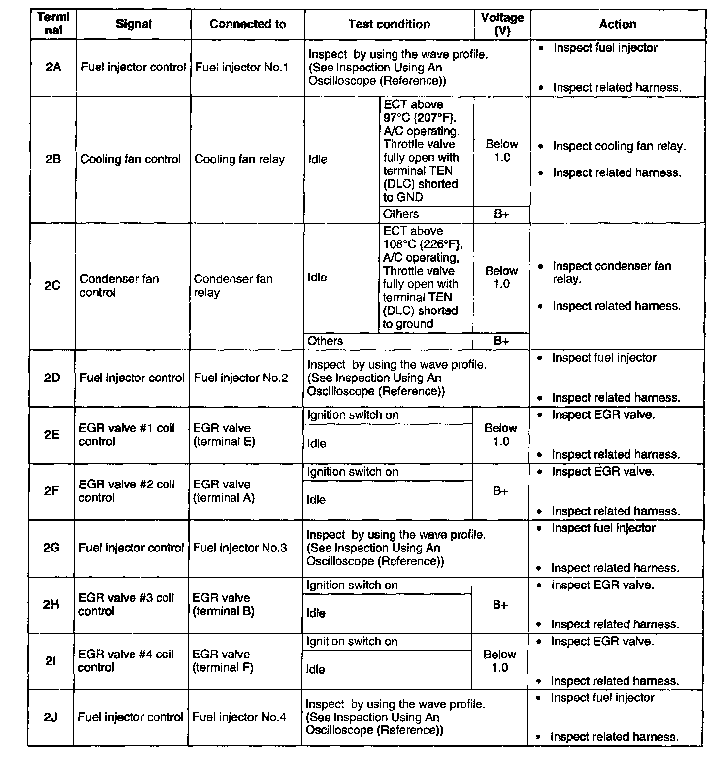 PCM Terminal Voltage (Reference) - Terminals (2A - 2J):