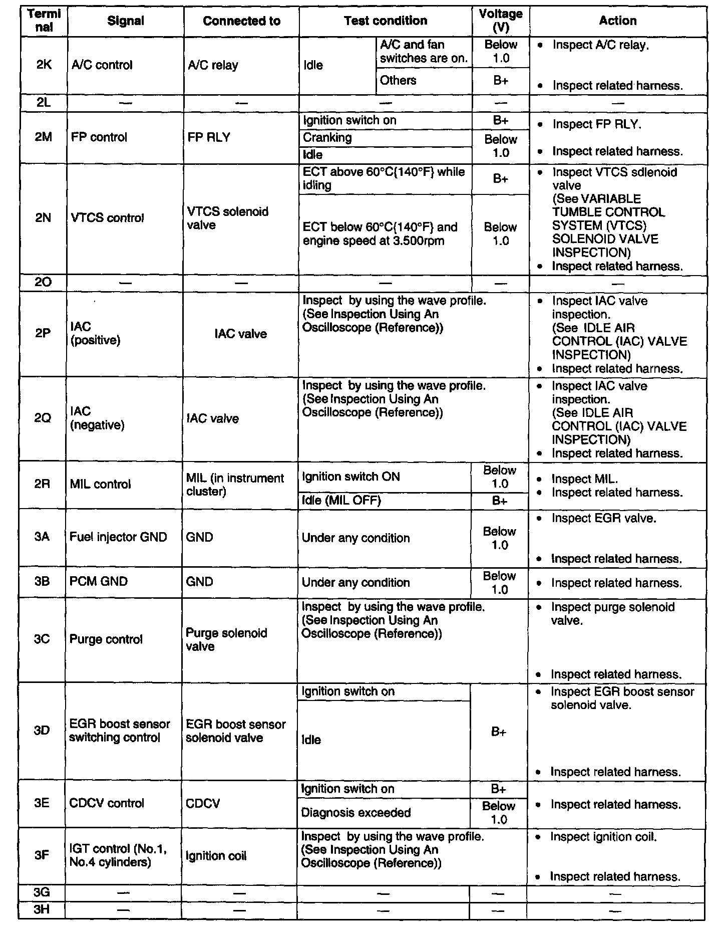 PCM Terminal Voltage (Reference) - Terminals (2K - 3H):