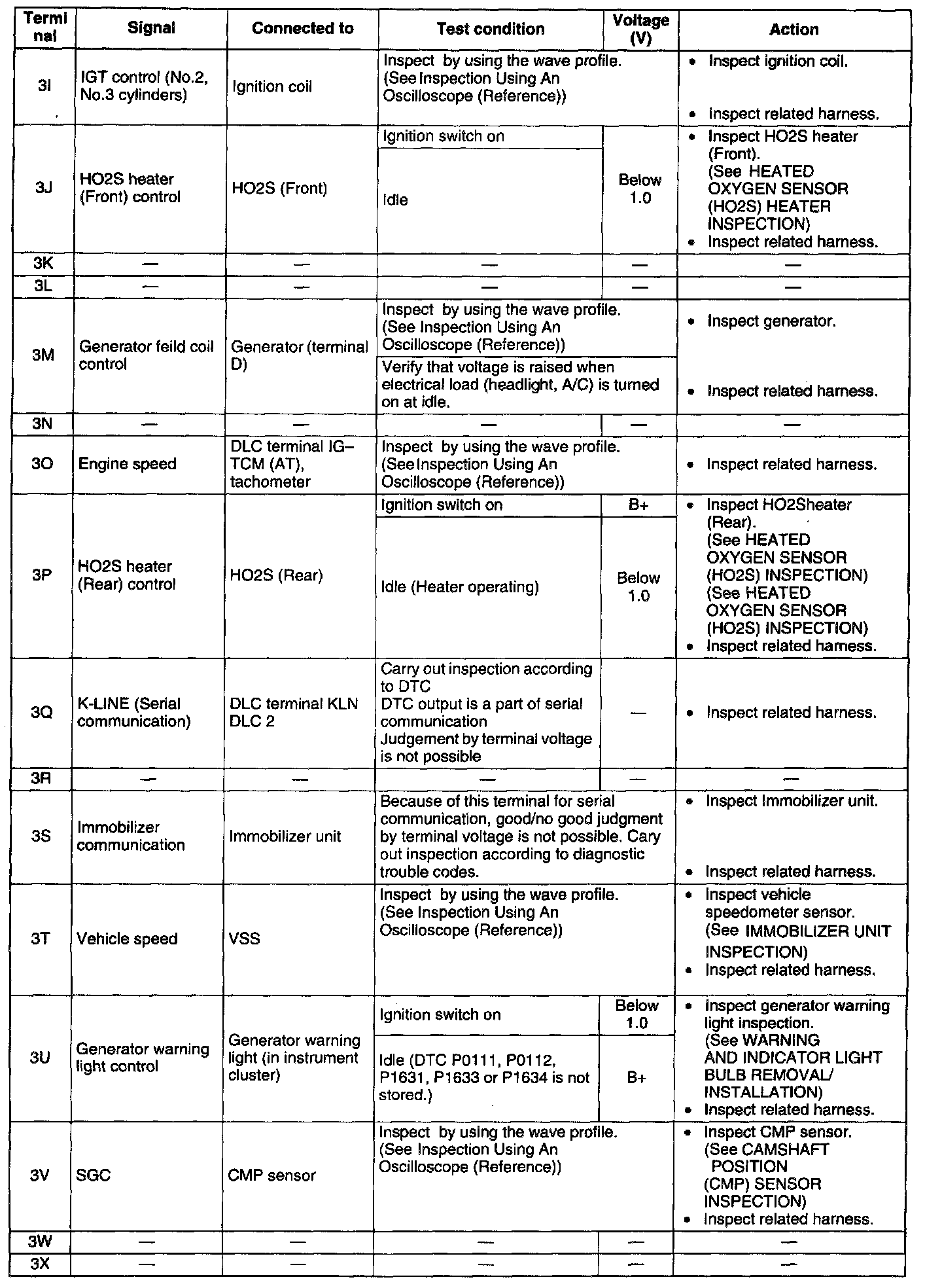 PCM Terminal Voltage (Reference) - Terminals (3I - 3X):