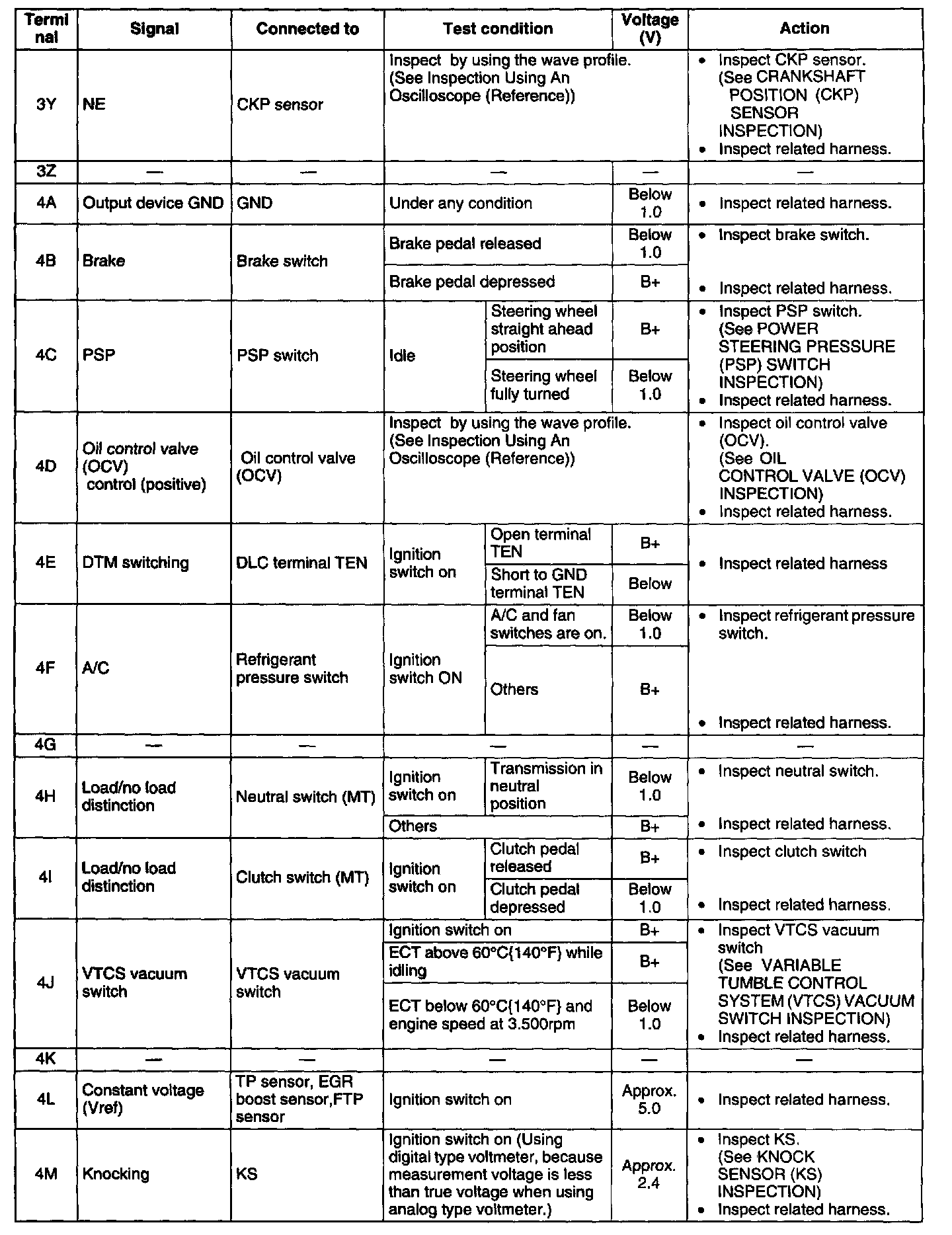 PCM Terminal Voltage (Reference) - Terminals (3Y - 4M):