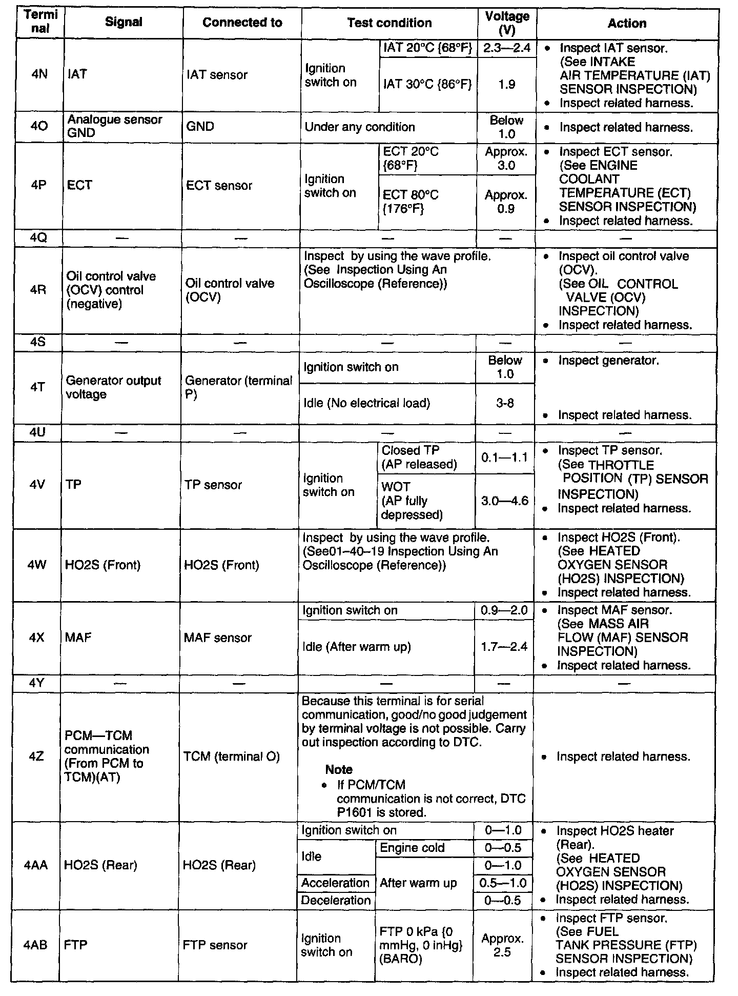 PCM Terminal Voltage (Reference) - Terminals (4N - 4AB):