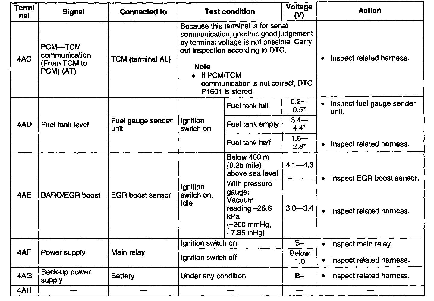 PCM Terminal Voltage (Reference) - Terminals (4AC - 4AH):