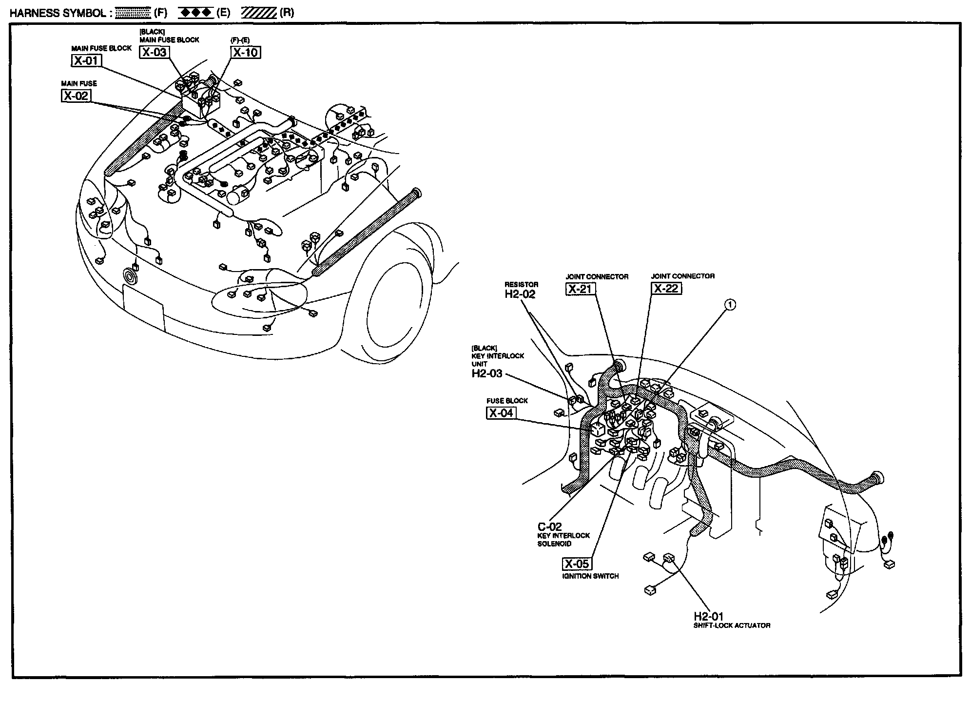 H-2 - Key Interlock System / Shift-lock System Harness/Connector Symbols: