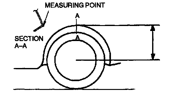 6. Measure the height from the center of the wheel to the fender brim. The difference between the left and right measurement must not exceed 10 mm (0.39 Inch).
