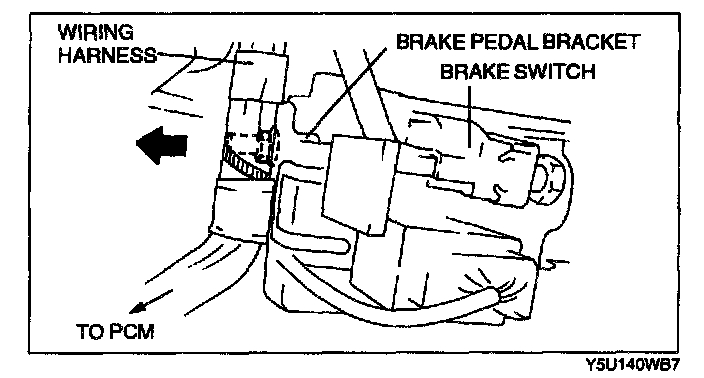 1. Push the harness (PCM harness) installed to the brake pedal bracket in the opposite direction of the brake pedal bracket.