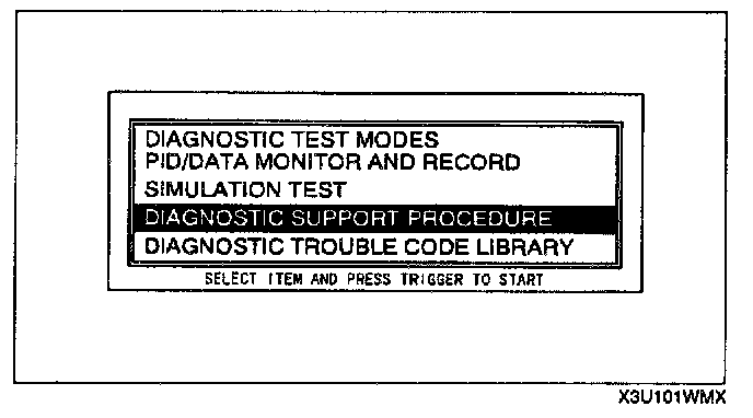 3. Move the cursor to DIAGNOSTIC SUPPORT PROCEDURE.