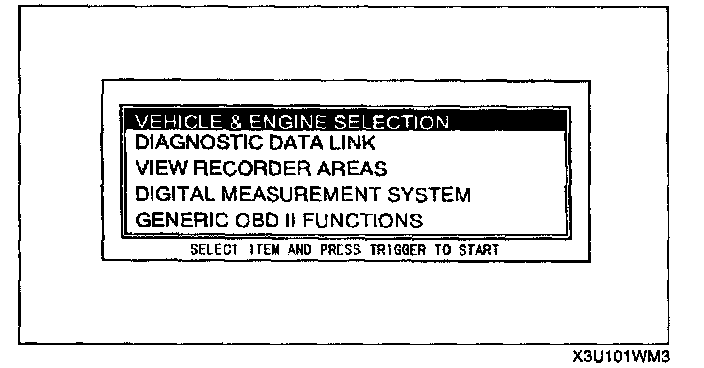 4. Move the cursor to VEHICLE & ENGINE SELECTION.