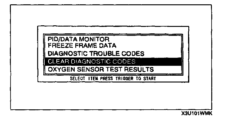 5. Move the cursor to CLEAR DIAGNOSTIC CODES.