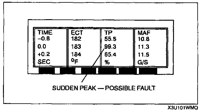 6. Graph format: Scroll through the PID data while analyzing the information.