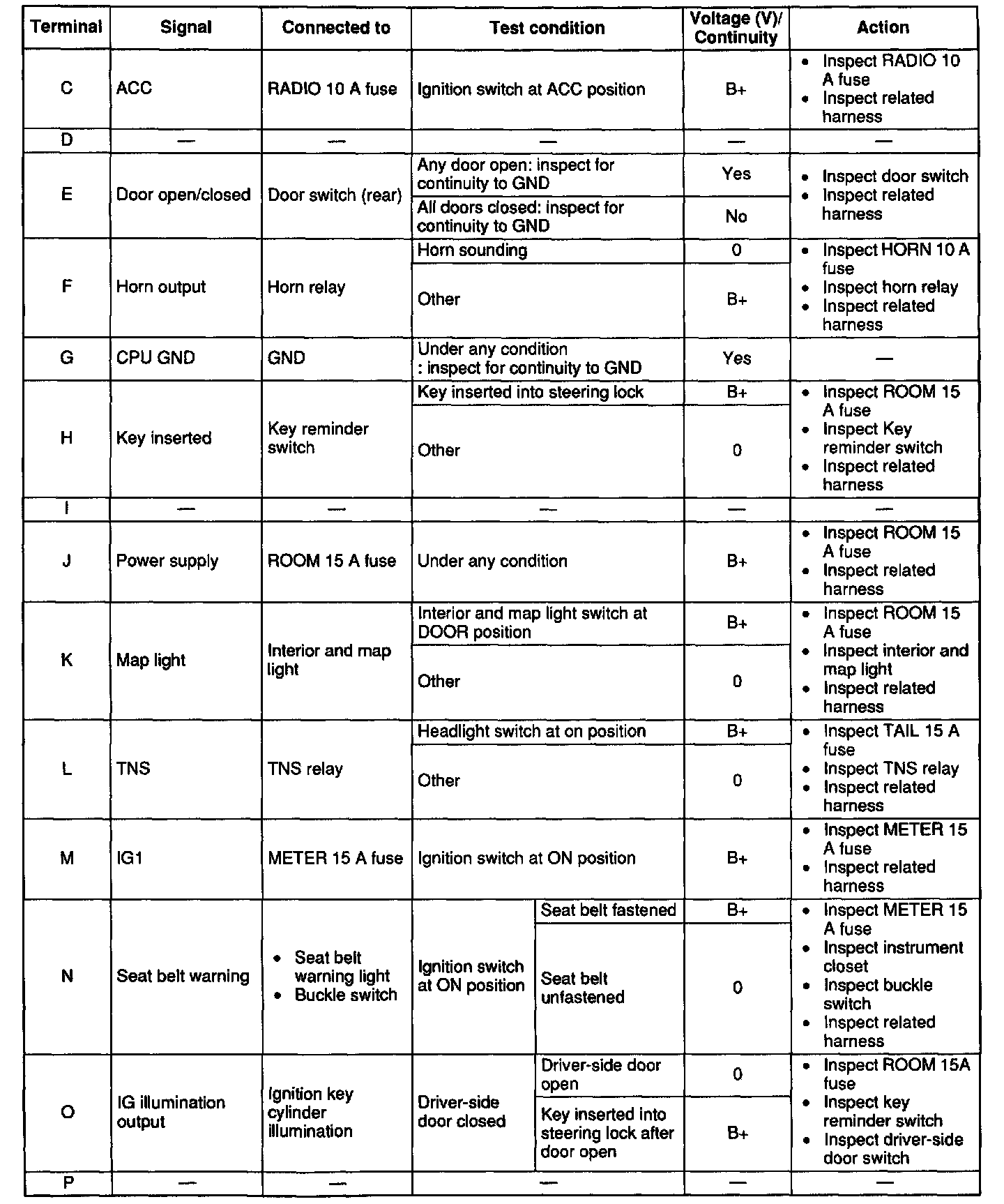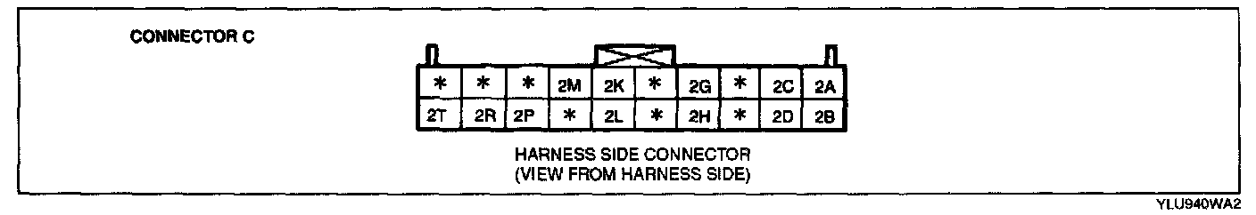 Connector B, C, and D (Terminals except 1B, 1M, 1N, 2D, 2T, 3A, 3F, 3H, 3J, and 3K)