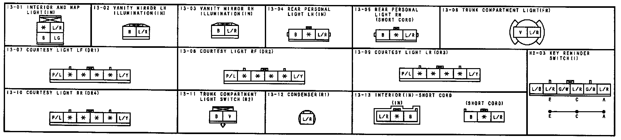 I-3 - Courtesy Light / Interior Light / Map Light / Rear Personal Light / Trunk Compartment Light / Vanity Mirror Illumination Connectors: