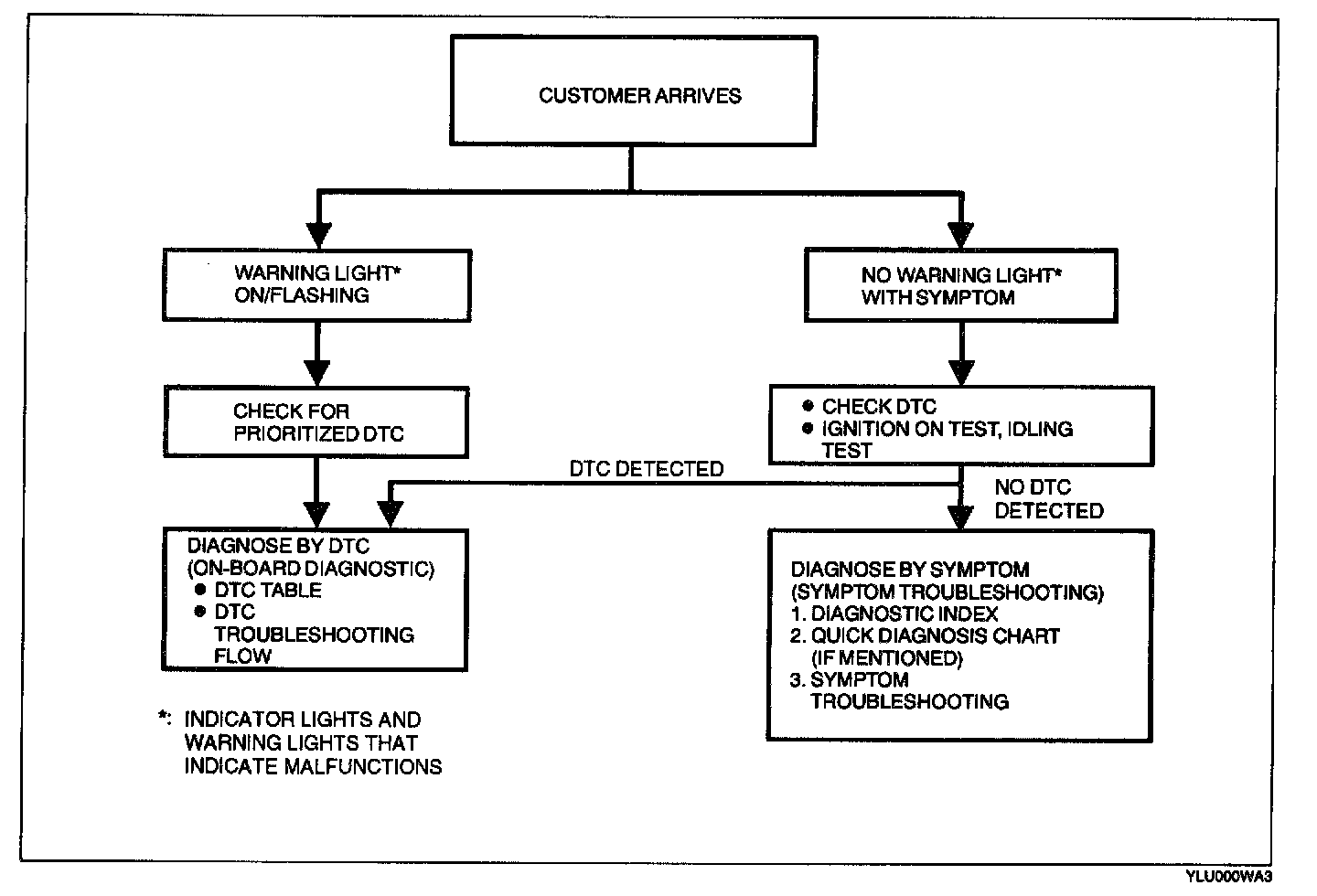 - The quick diagnosis chart lists diagnosis and inspection procedures to be performed specifically relating to the cause of the malfunction.