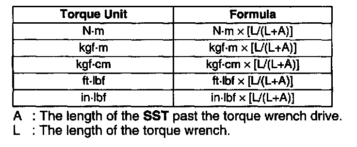 - When using a torque wrench-SST or equivalent combination, the written torque must be recalculated due to the extra length that the SST or equivalent adds to the torque wrench. Recalculate the torque using the following formulas. Choose the formula that applies to you.