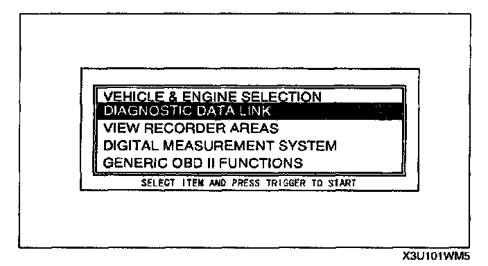 13. Move the cursor to DIAGNOSTIC DATA LINK on the main menu screen.