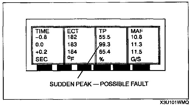 6. Graph format: Scroll through the PID data while analyzing the information.