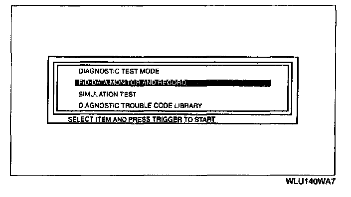 2. Referring to the NGS instruction manual, select the "PID/DATA MONITOR AND RECORD" and press TRIGGER.