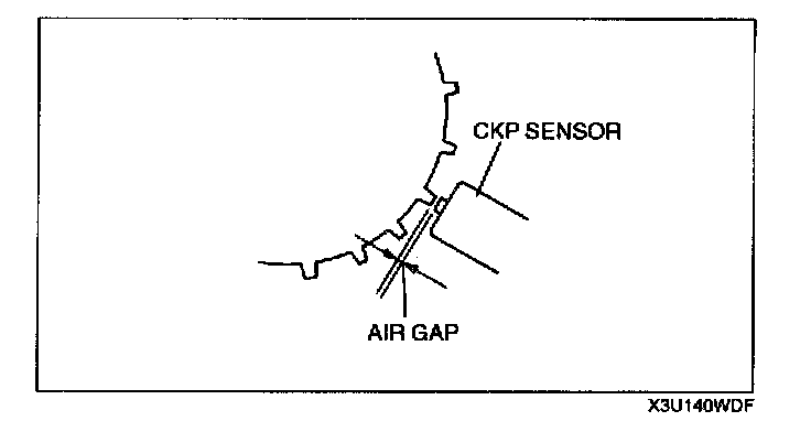 2. Measure the air gap between the crankshaft pulley teeth and the CKP sensor using a feeler gauge.