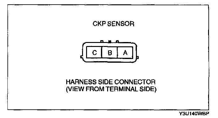 2. Measure the resistance between the CKP sensor terminals A and B using an ohmmeter.
