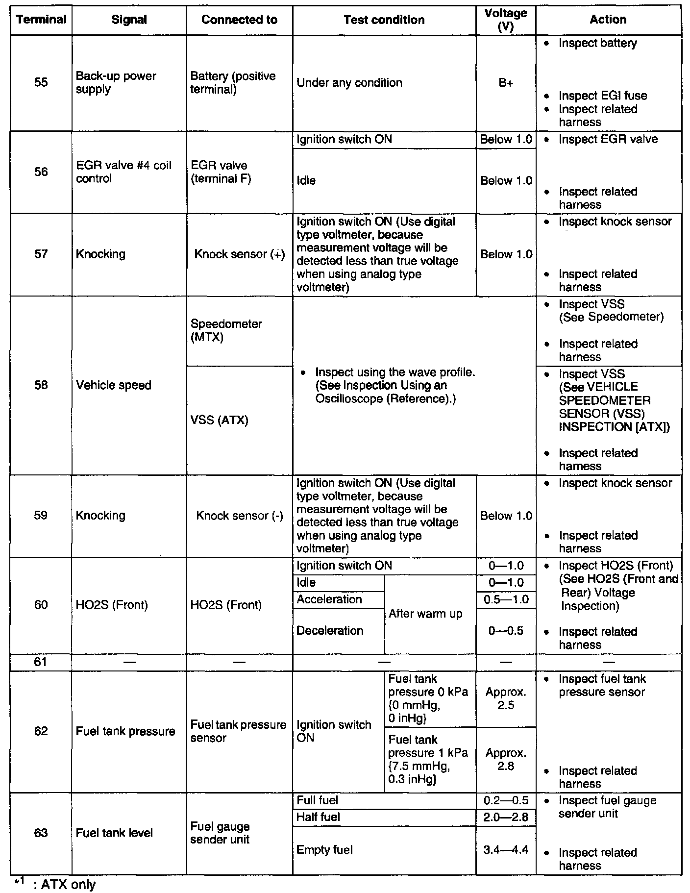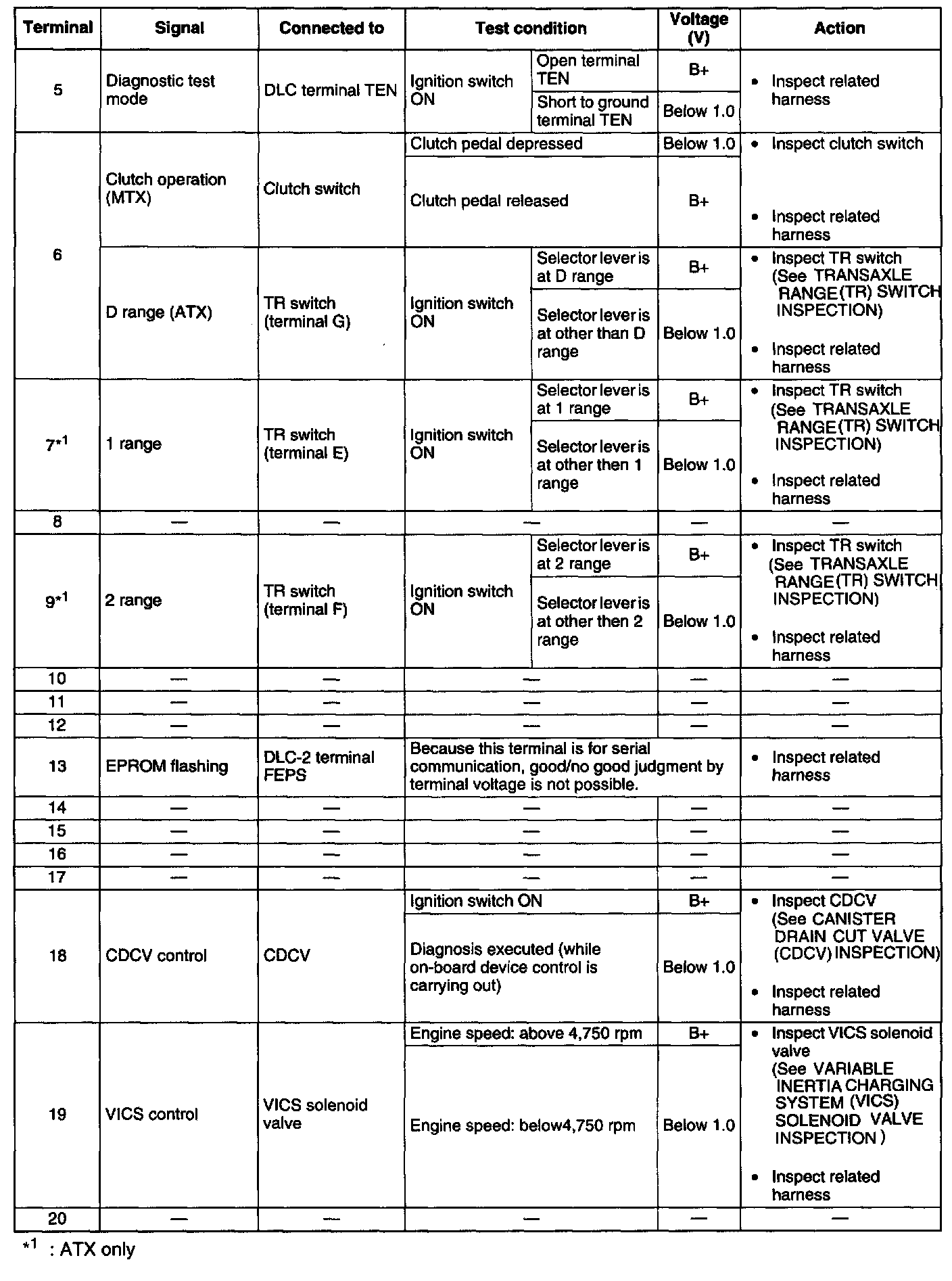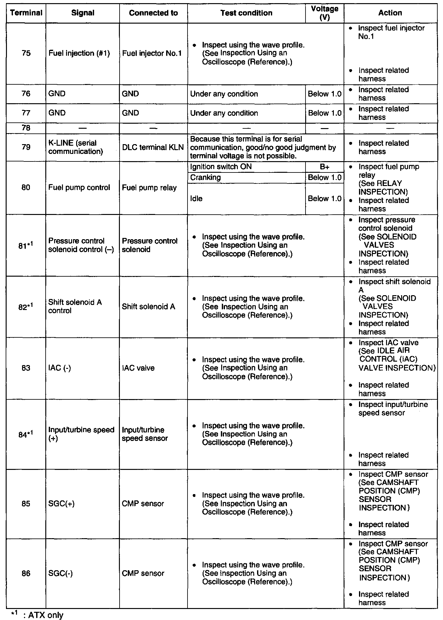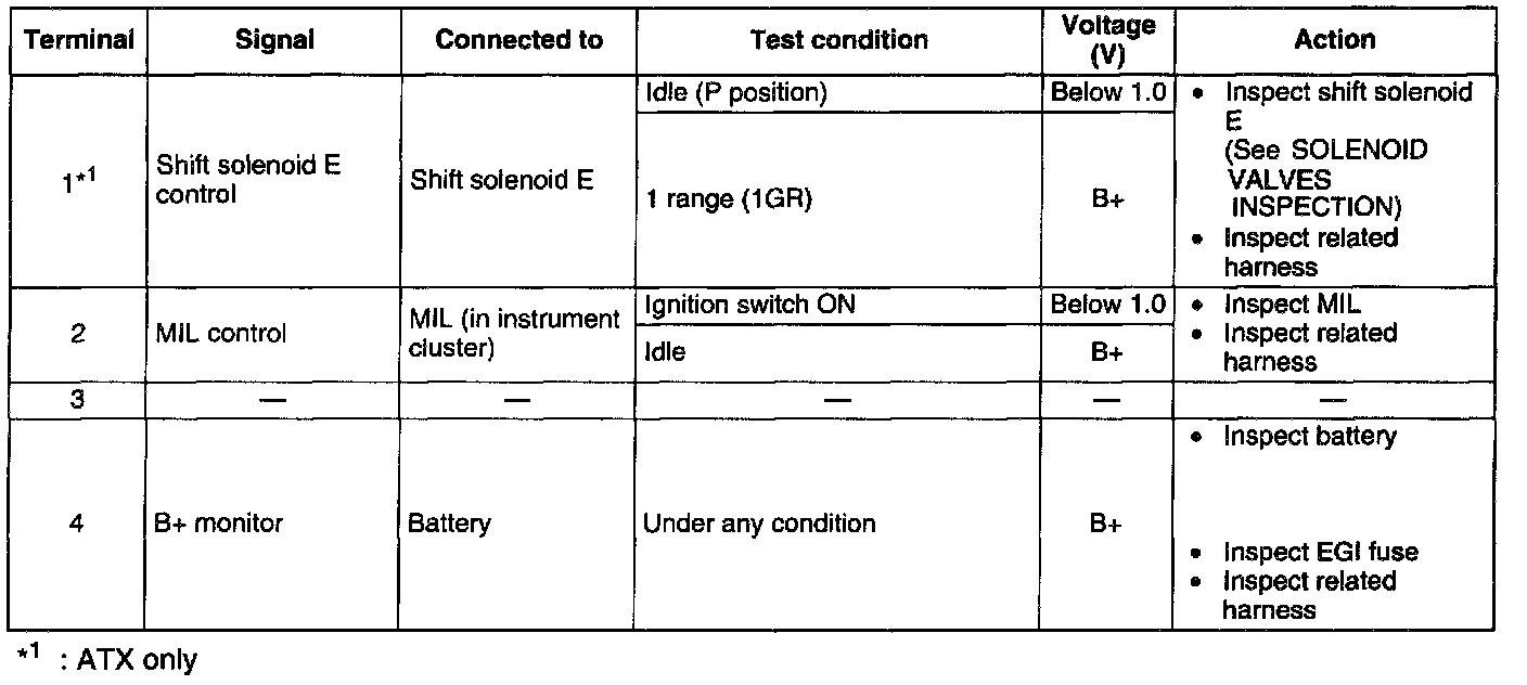 PCM INSPECTIONCAUTION: The PCM terminal voltages vary with change in measuring conditions and vehicle conditions. Always carry out a total inspection of the Input systems, output systems, and PCM to determine the cause of trouble. Otherwise, a wrong diagnosis will be made.