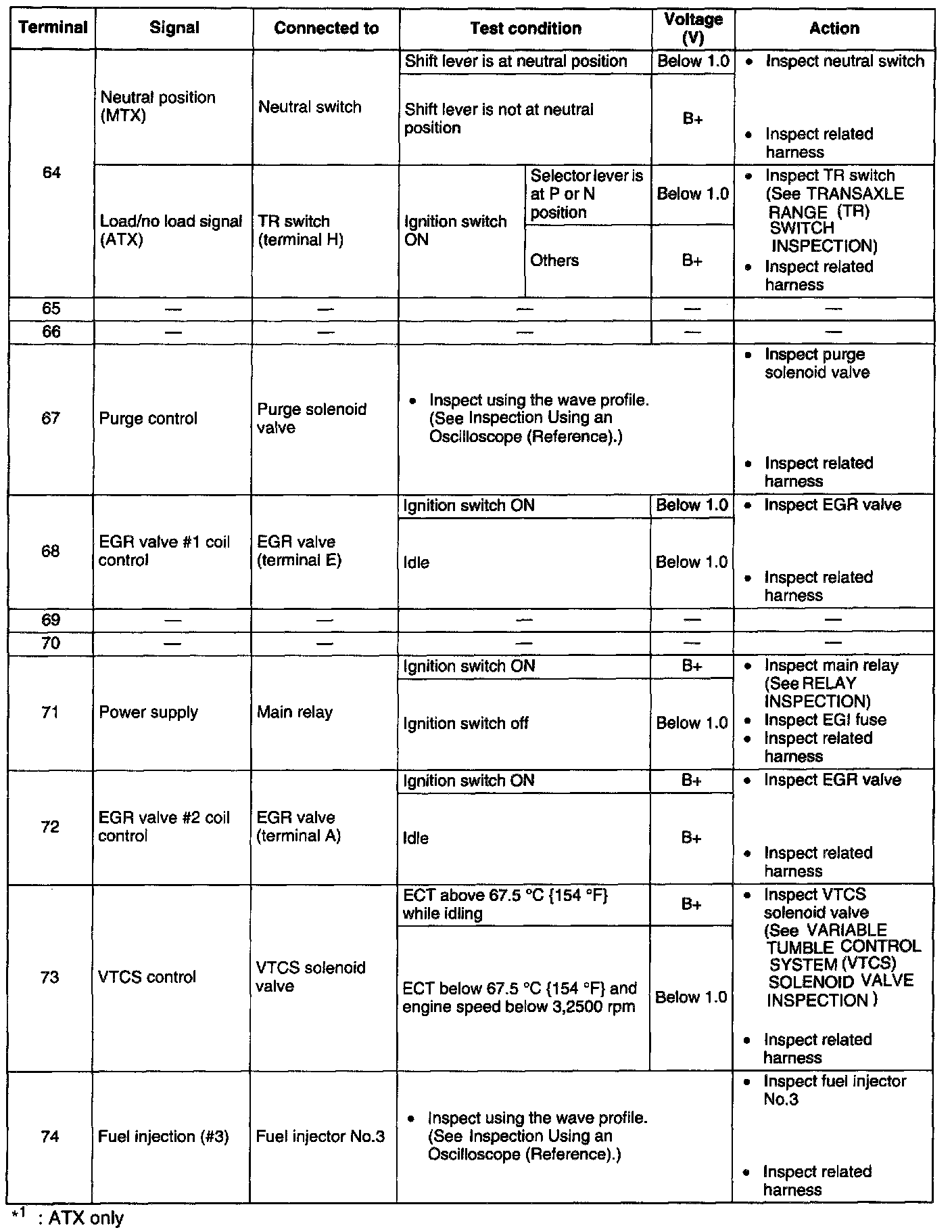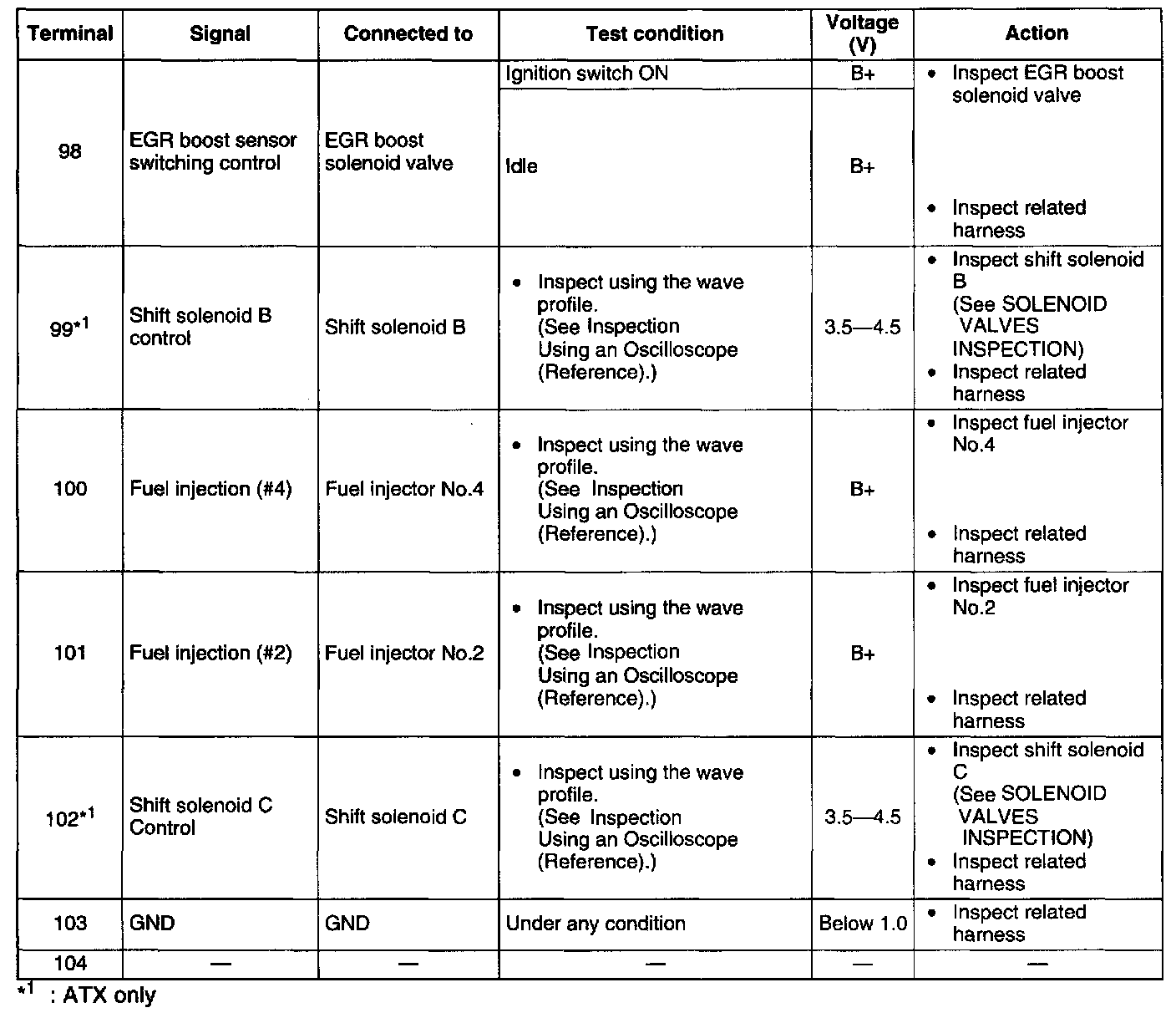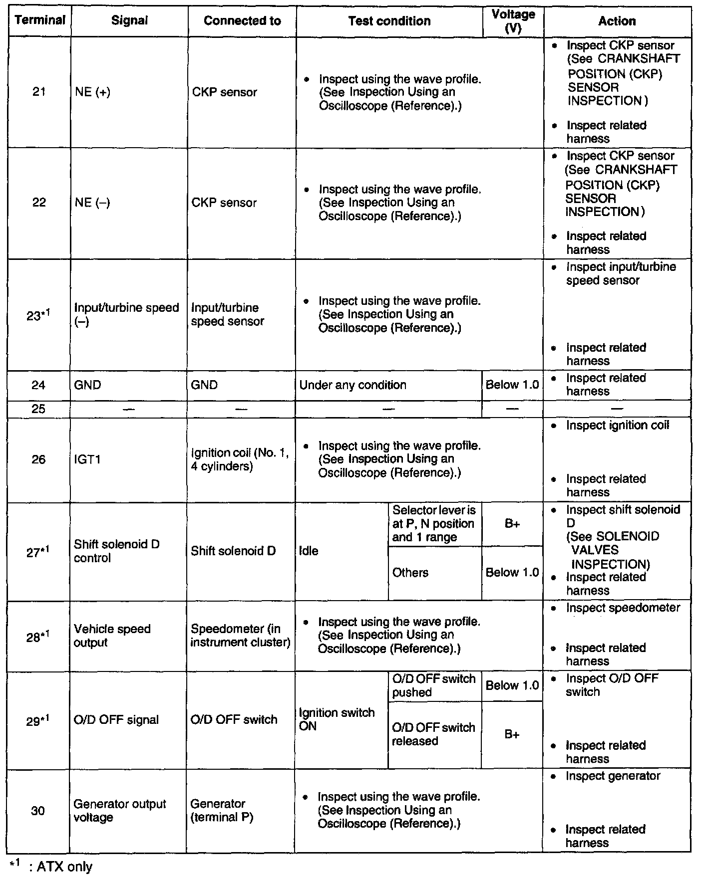 PCM INSPECTIONCAUTION: The PCM terminal voltages vary with change in measuring conditions and vehicle conditions. Always carry out a total inspection of the Input systems, output systems, and PCM to determine the cause of trouble. Otherwise, a wrong diagnosis will be made.
