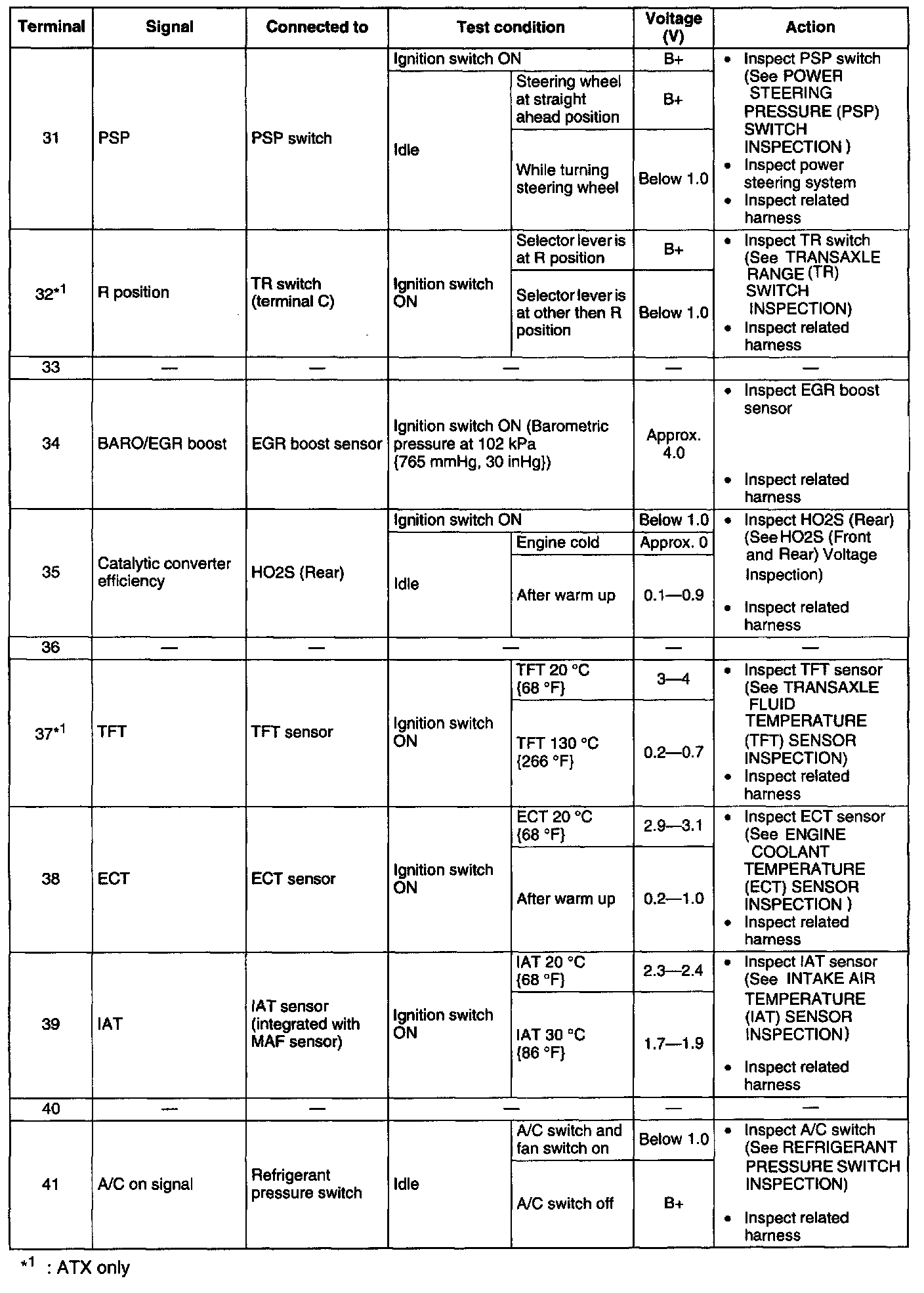 Terminal Voltage Table (Reference) - Terminals (31 - 41):