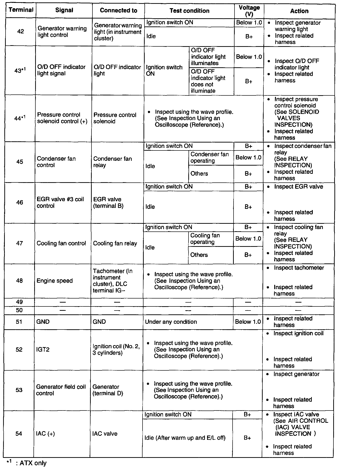 Terminal Voltage Table (Reference) - Terminals (42 - 54):