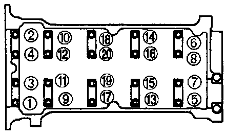 2. Tighten the cylinder head bolts a few turns in the order shown.