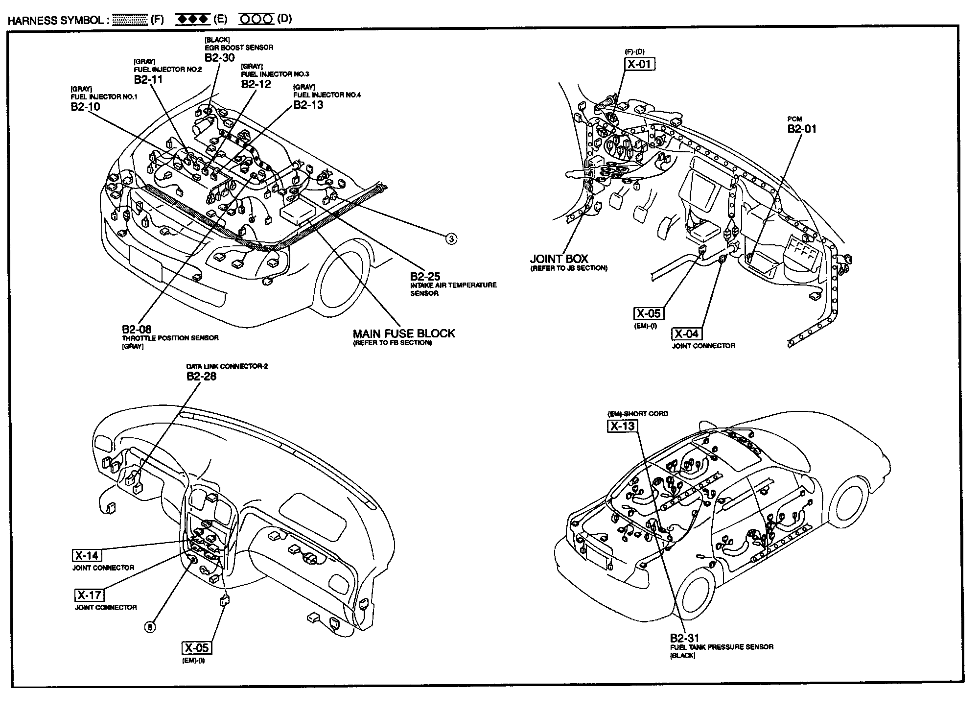 B-2c - EC-AT Control System/Engine Control System Harness/Connector Symbols: