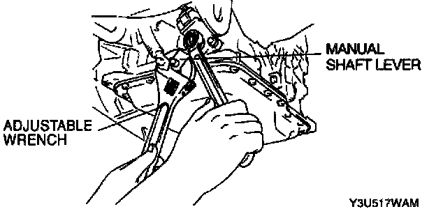17. Set the adjustable wrench as shown to hold the manual shaft lever.