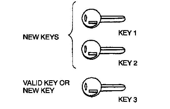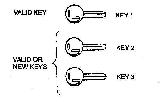 1. Using key 1, start engine. After security light illuminates for 1 - 2 seconds, turn key 1 to LOCK.