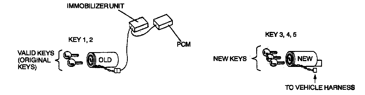 - To make a copy of the key or replace the immobilizer system component parts (the key(s), steering lock, immobilizer unit and/or PCM), customer should bring all keys to the dealer. This is because the previously programmed key IDs are erased when reprogramming the key IDs into the immobilizer unit and PCM.