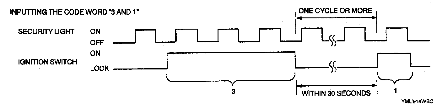 NOTE: If the code word is not input correctly, the security light goes out after all eight digits are input. In this case, perform the "Code Word Input Error Recovery Procedure".