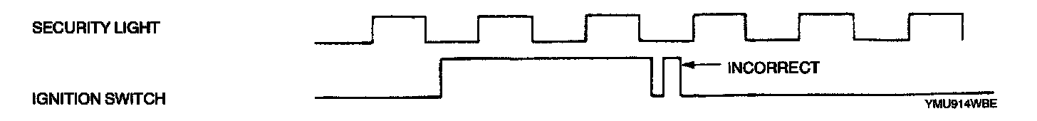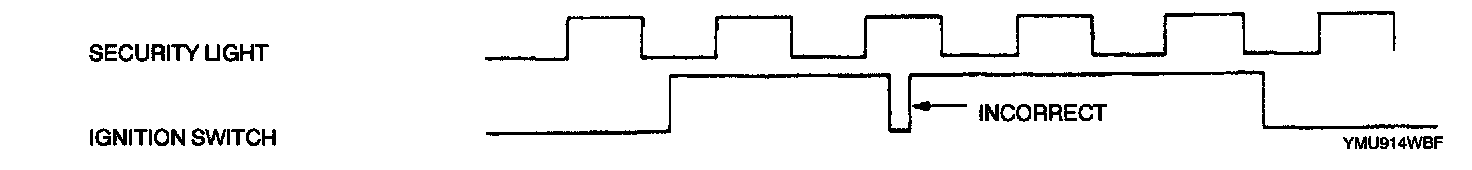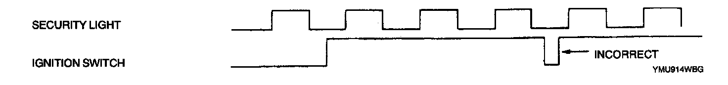 - The ignition switch is turned to ON and LOCK while the security light is off.