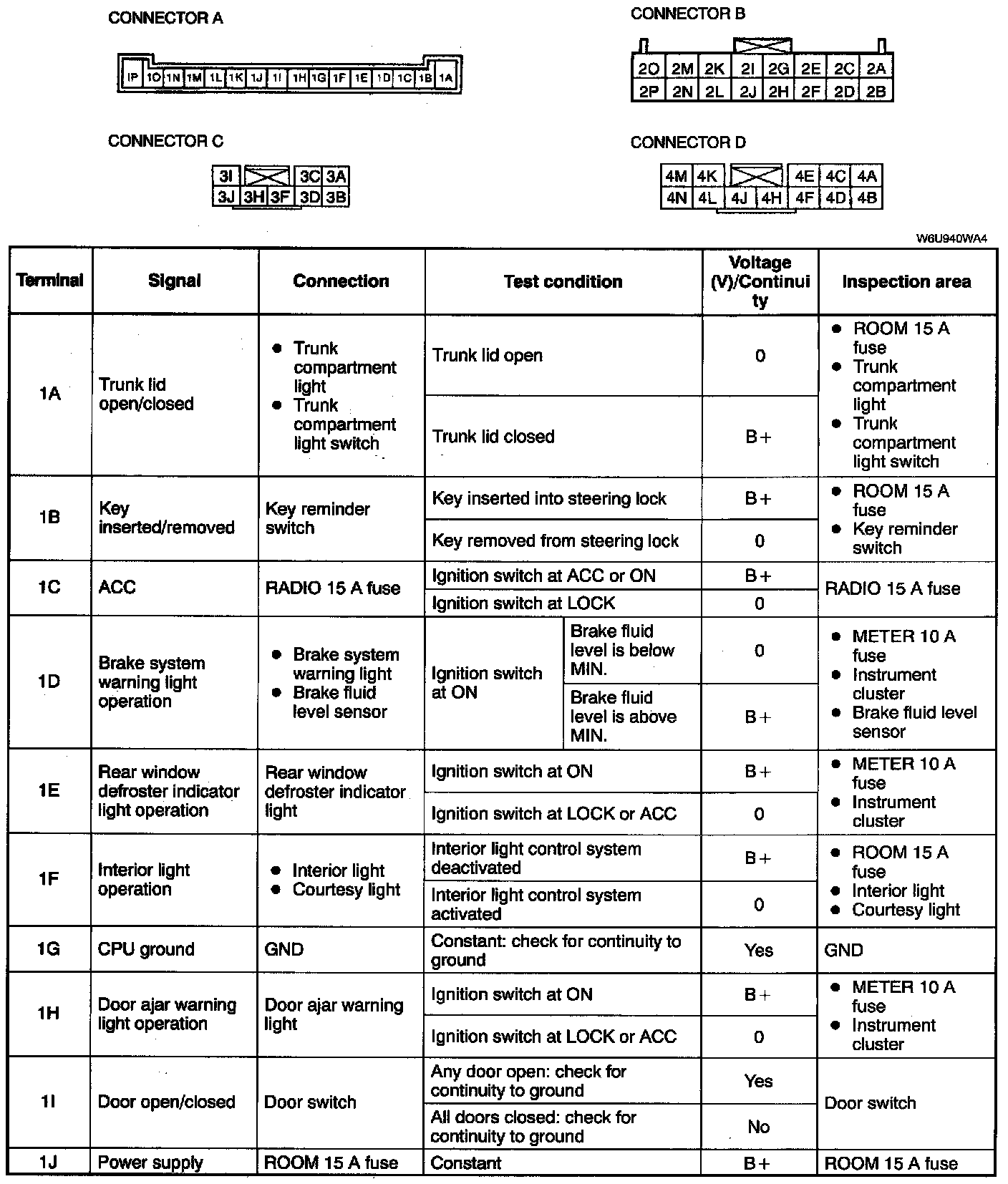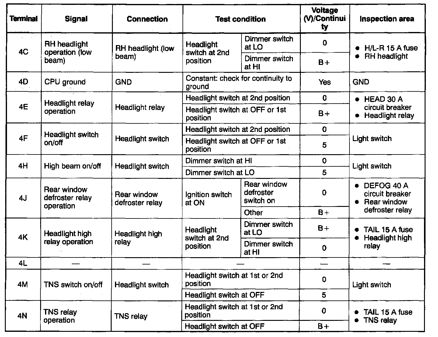- Disconnect the CPU connector before checking for continuity at terminals 4B and 4D as shown in the figure.