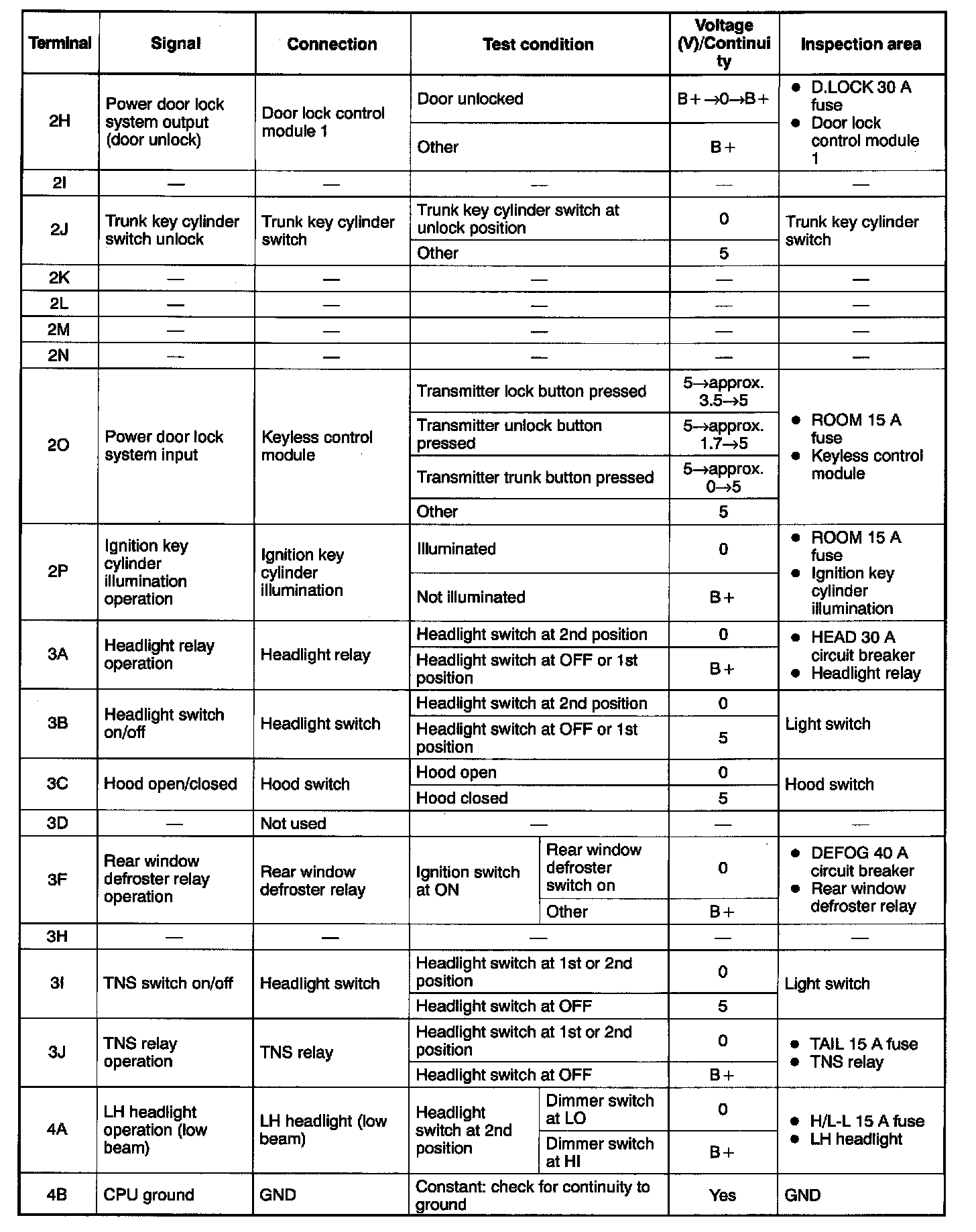 Terminal Voltage List (Reference) / Terminals (2H - 4B):