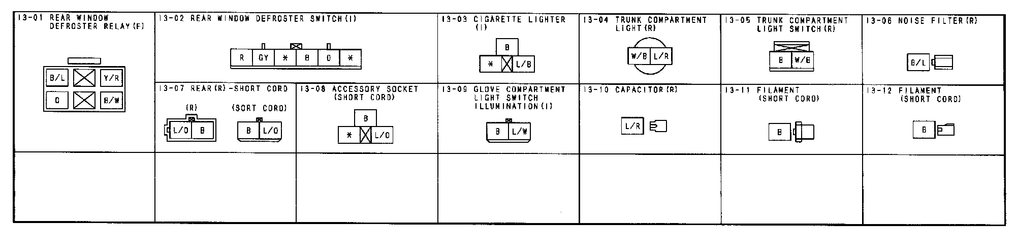 I-3 - Accessory Socket/Cigarette Lighter/Glove Compartment Light/Rear Window Defroster/Trunk Compartment Light Connectors: