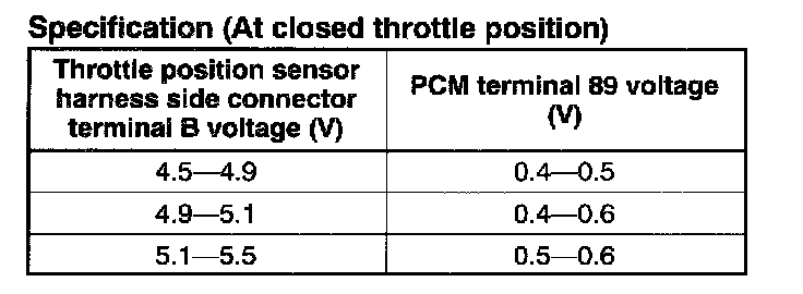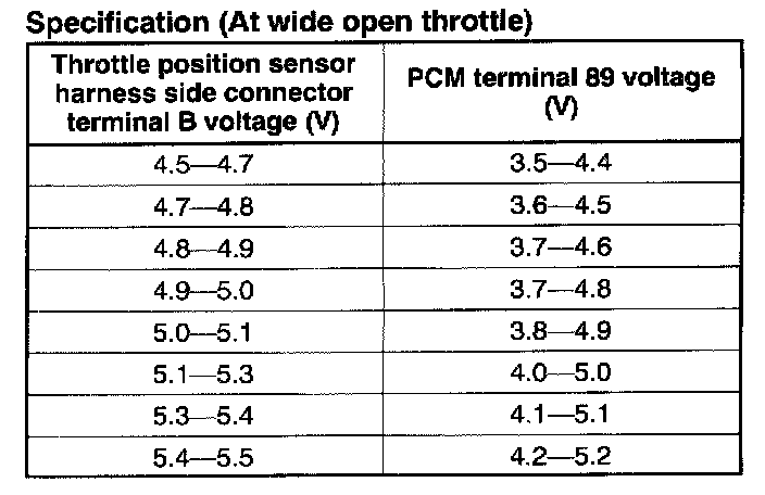 15. When the throttle valve is at the wide open throttle, verify that the PCM terminal 89 voltage is in the specification.