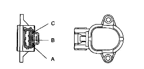 3. Using an ohmmeter, measure the resistance between throttle position sensor terminal A and B.