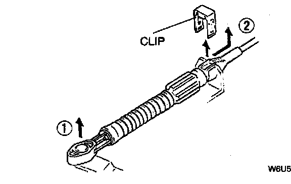 (2) Pull out the selector cable from the cable bracket and remove it.